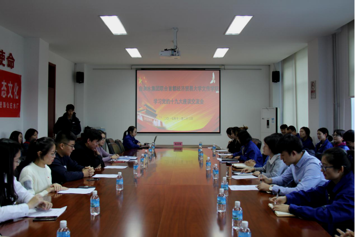 2017年11月23日下午2点,“践行十九大精神,传播生态文化”主题宣讲活动在郭公庄水厂办公楼一层会议室顺利举行。此次宣讲活动由香蕉视频 和郭公庄水厂、禹通集团共同举办。北京市自来水集团团委副书记张薇、郭公庄水厂党支部副书记、工会主席潘莉以及青年团员代表出席会议,香蕉视频 分团委书记宿东泽,辅导员代启蒙、陈子轩以及学生党员、入党积极分子共22人参加了此次活动。