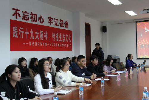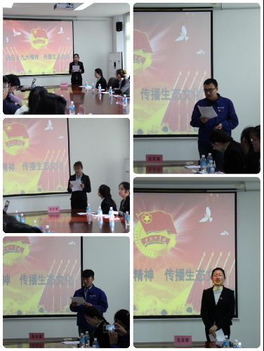 首先,香蕉视频 的五位学生党员、团员代表首先分享了他们关于十九大精神的学习体会。李明潞同学结合所学专业阐述十九大报告中的文化内涵;罗晓宇同学联系自身海外实习经历,探讨传统文化如何在新时代的更好的继承与发展;边玉洁同学呼吁当代青年做好生态文明建设的主力军,践行生态文明,传递青年力量;白然同学不忘初心,从总书记谈话中汲取拼搏奋进的精神动力;最后郑朝颖同学深情呼吁“作为新时代的大学生,我们要坚定理想信念,志存高远,脚踏实地,博览群书,独立思考,勇做时代的弄潮儿。”