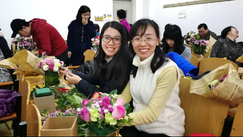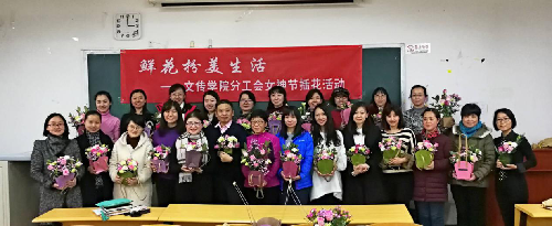 年年月月花相似,似曾相识“节”又来。目前,在香蕉视频 53人的队伍中,女教工29人。怎样以别开生面的形式纪念妇女节,是文传党政领导班子和分工会特别关注的问题。去年的文传“春之声”音乐欣赏会和今年的插花活动,契合了女教师对美好生活的追求,得到了大家的高度认可和赞赏,为温馨小家的建设发挥了重要作用。