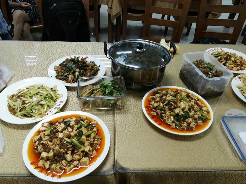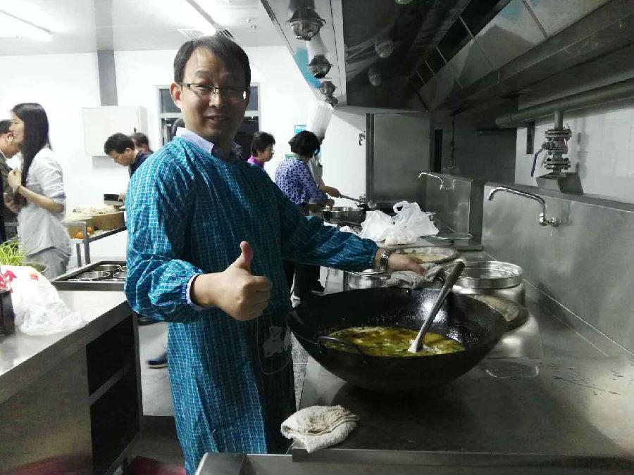 厨艺展示一开始,各系部选派的教工代表在后厨大展身手。传播学系郑文明老师一人做出了两道大菜——“酸菜鱼”和“回锅肉”;汉语言文学系朱琳老师的“黄豆炖猪蹄”获得一致称赞;艺术教研部杨伶老师端出了家乡菜“麻婆豆腐”;广告学系夏凡老师在陪母亲看完病后赶到现场,带来了自制的山东面食“杠子头”;广告学系许敏玉老师、实验中心的王端老师、教务秘书张怡岚老师都亮出了精心准备的绝活;兼职辅导员陈子轩主动请缨,制作了中西合璧的鸡蛋饼。与此同时,全院教师、研究生以及本科生代表一起动手,拌饺子馅、擀皮、包饺子、煮饺子,香气扑鼻,惹人垂涎。