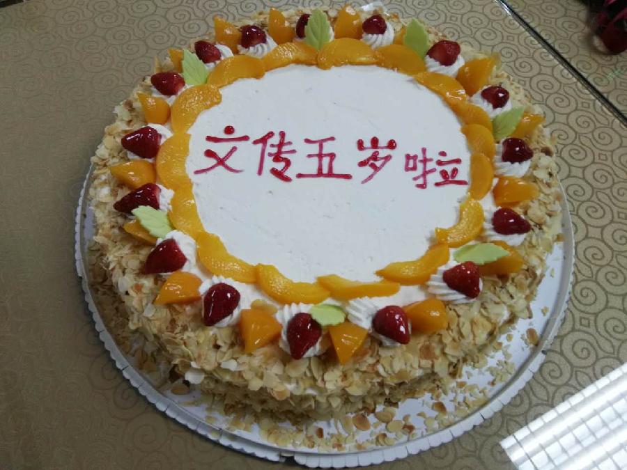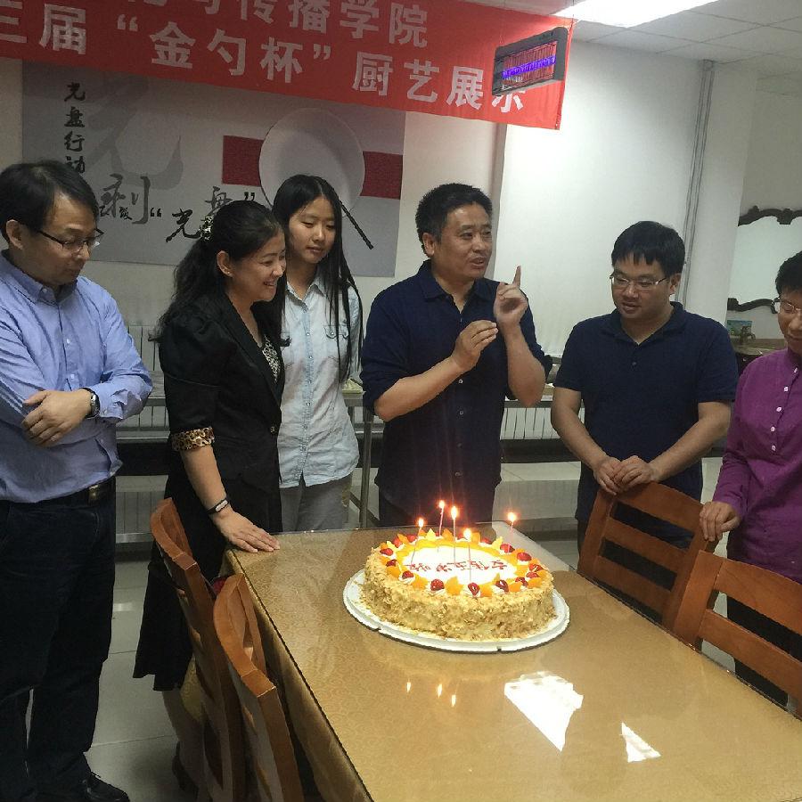 院长石刚、党总支书记付琳、分工会主席张小乐及各系部主任和研究生代表一起点燃了“文传五岁啦”生日蛋糕上的蜡烛。石刚院长说:“今天是个好日子,文传五周年恰逢五四青年节,预示着学院生机勃勃,蒸蒸日上。”