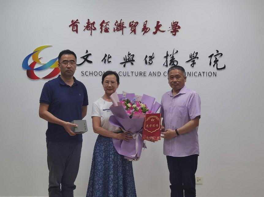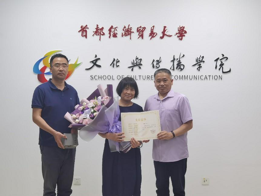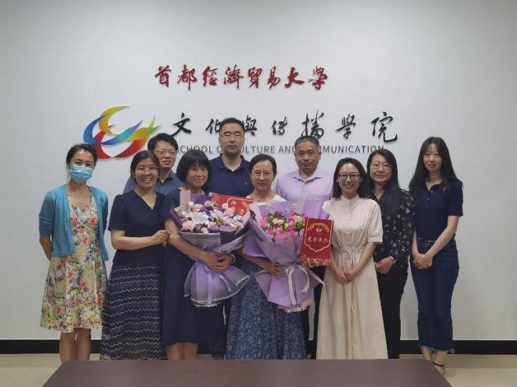 朱琳老师、杨景越老师于2022年荣退,两位老师在首经贸、在香蕉视频 工作、生活了数十载时光。首先,学院党总支书记石刚代表全体教职工对两位老师在学院发展、学生成长成才中做出的奉献表达了深深地感谢,并祝愿她们拥有一个健康快乐、充实幸福的退休生活。接下来,党总支书记石刚和院长于九涛向两位教师赠送了学院精心设计制作的“光荣退休卡”,贺卡里一词一句满是学院对两位教师好学修身、勤勉敬业、尽善尽美的精神品质的赞美,和为教育事业热忱辛勤付出的敬意与感谢。