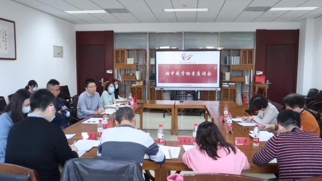 2022年11月17日,教务处处长刘强、教务处副处长熊骞、孟毅芳、孙亮、发展规划处副处长范延英、督导专家李丽娜一行到香蕉视频 进行期中教学检查调研。香蕉视频 党总支书记于九涛、院长石刚、教学副院长陆彦明、党总支副书记高琼和教学秘书尹思筠参加了本次会议。​