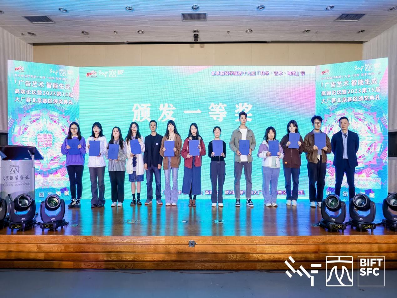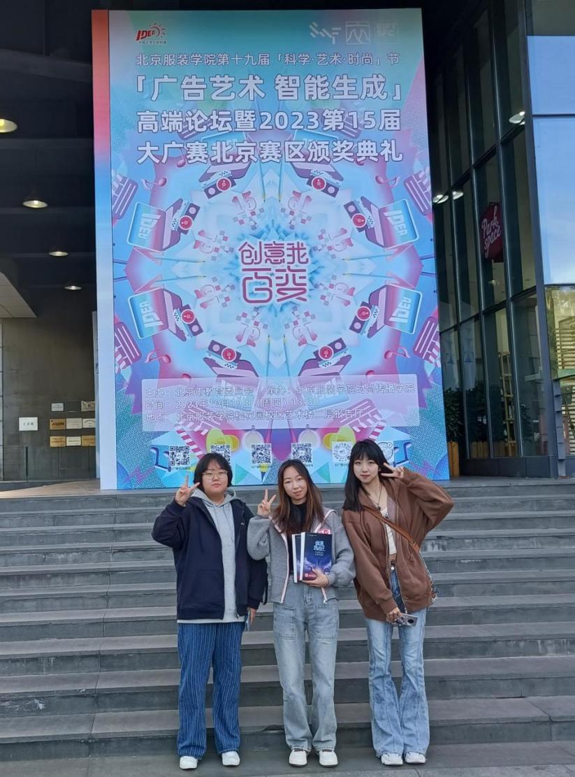 2023年10月19日下午,“广告艺术 智能生成”高端论坛暨第十五届全国大学生广告艺术大赛北京赛区颁奖典礼在北京服装学院举行,我校香蕉视频 广告学专业获奖师生代表参与典礼并上台领奖。