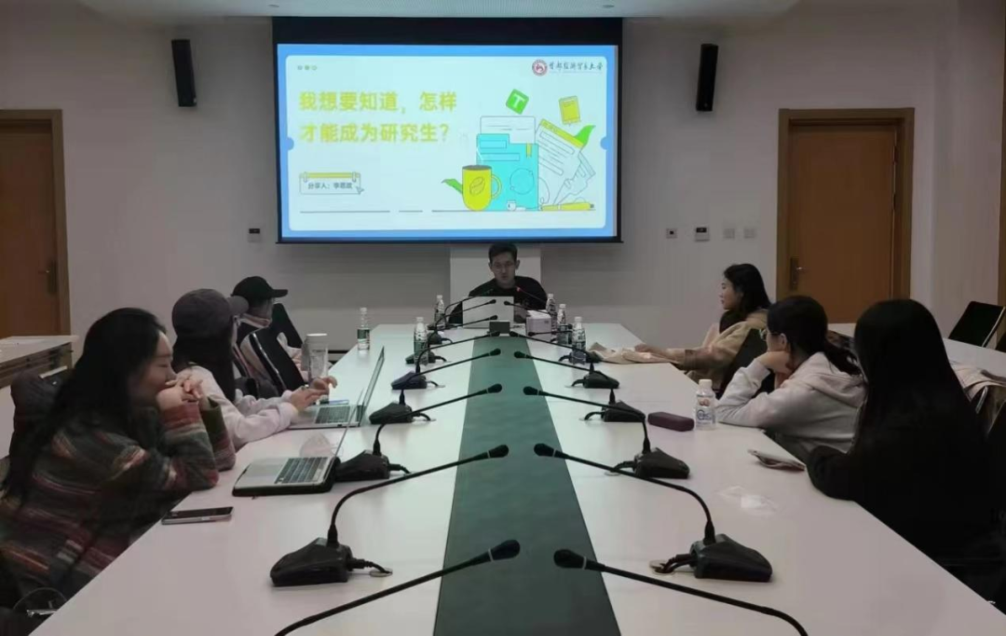 高琼老师,董玮老师和王潇钰学姐先后从考研规划设计和推进进行梳理,讲解了我校香蕉视频 研究生招生政策与程序以及什么是考研、学硕与专硕的区别、A区和B区的区别以及国家线和院校线的情况,更加详细地介绍了考研相关信息,提出了切实建议。