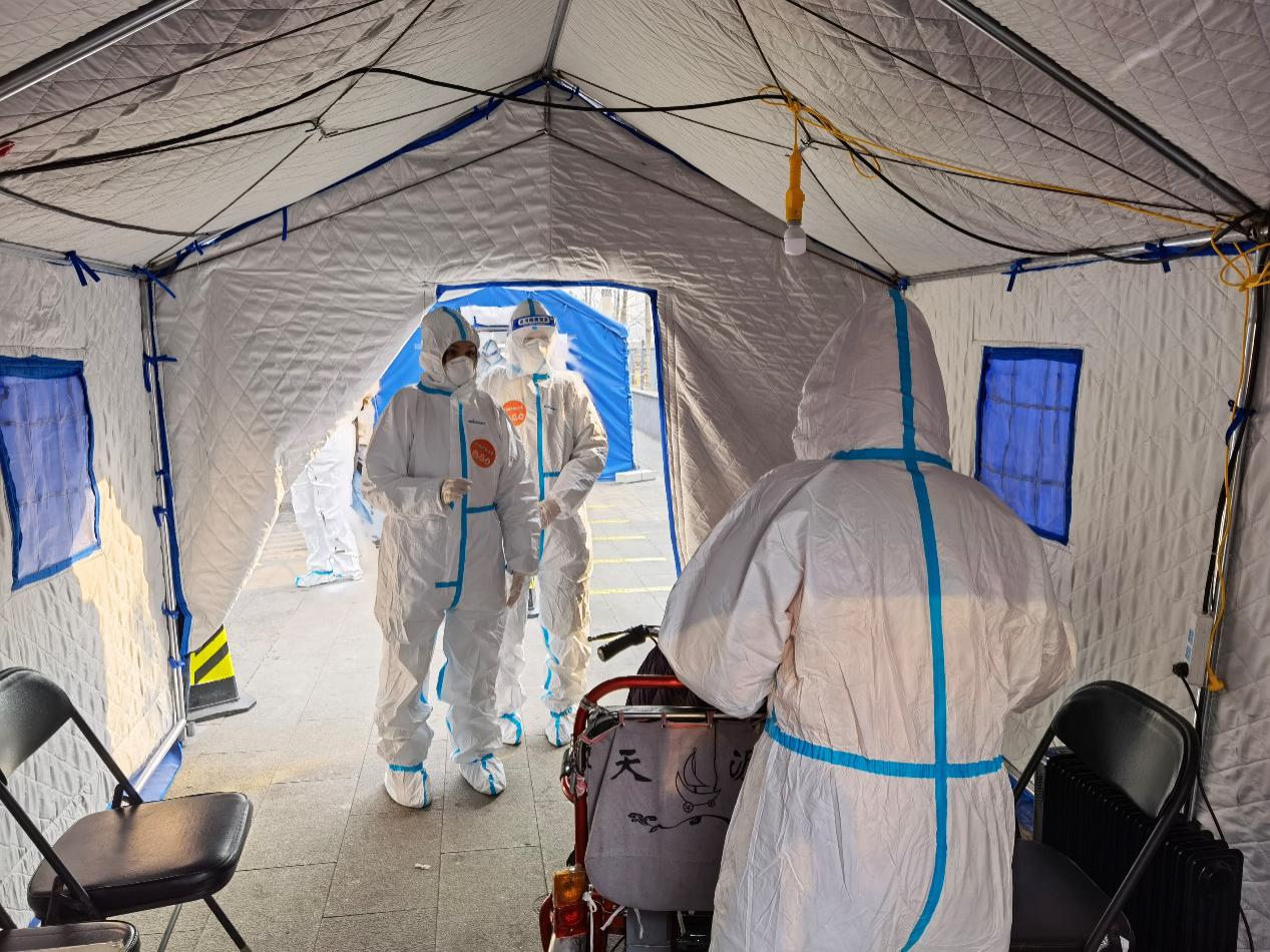 我看到医务人员穿着厚重的防护服在检测点一坐就是一天,哪怕不吃不喝,也要尽可能多的为居民进行检测;看到社区工作者耐心的协调等待检测的群众,教他们预约检测、提醒大家保持间距;看到学校的老师凌晨还在组织同学们的分工,清晨又最早到达,时刻关心、牵挂志愿者们的生活和安全保障;看到并肩战斗的小伙伴们有的五点就从家出发,有的凌晨十二点多才结束一天的工作......所有人都在自己平凡的岗位上默默付出着、奋斗着,在冬日里,散发着炽热的温度,散发出耀眼的光芒。