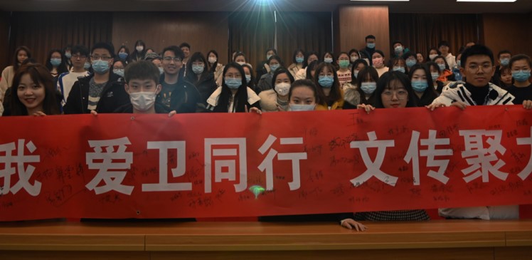 全体参会人员郑重承诺并在写有“防疫有我,爱卫同行。文传聚力,健康共赢!”标语的横幅上签名。