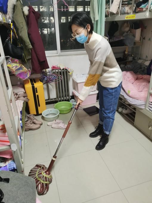 在宿舍里,同学们牢记出门时开窗通风,每周轮流进行扫地、消毒,让宿舍这个“小家”也时刻保持卫生、清洁的环境。