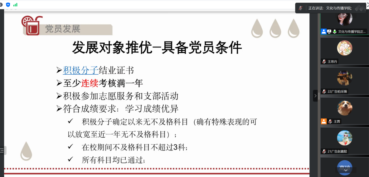 郭奕彤详细向同学们介绍了有关党员、团员的发展具体流程,并鼓励大家积极向共青团和党组织靠拢。