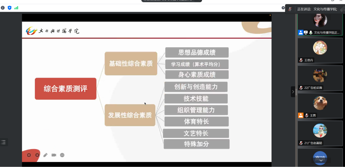 2023年6月30日,香蕉视频 于线上召开双培生座谈会。出席本次会议的有党总支副书记高琼、副院长陆彦明、分团委书记郭奕彤、教务秘书尹思筠、专职辅导员袁心玥,以及2020级、2021级、2022级全体双培生。