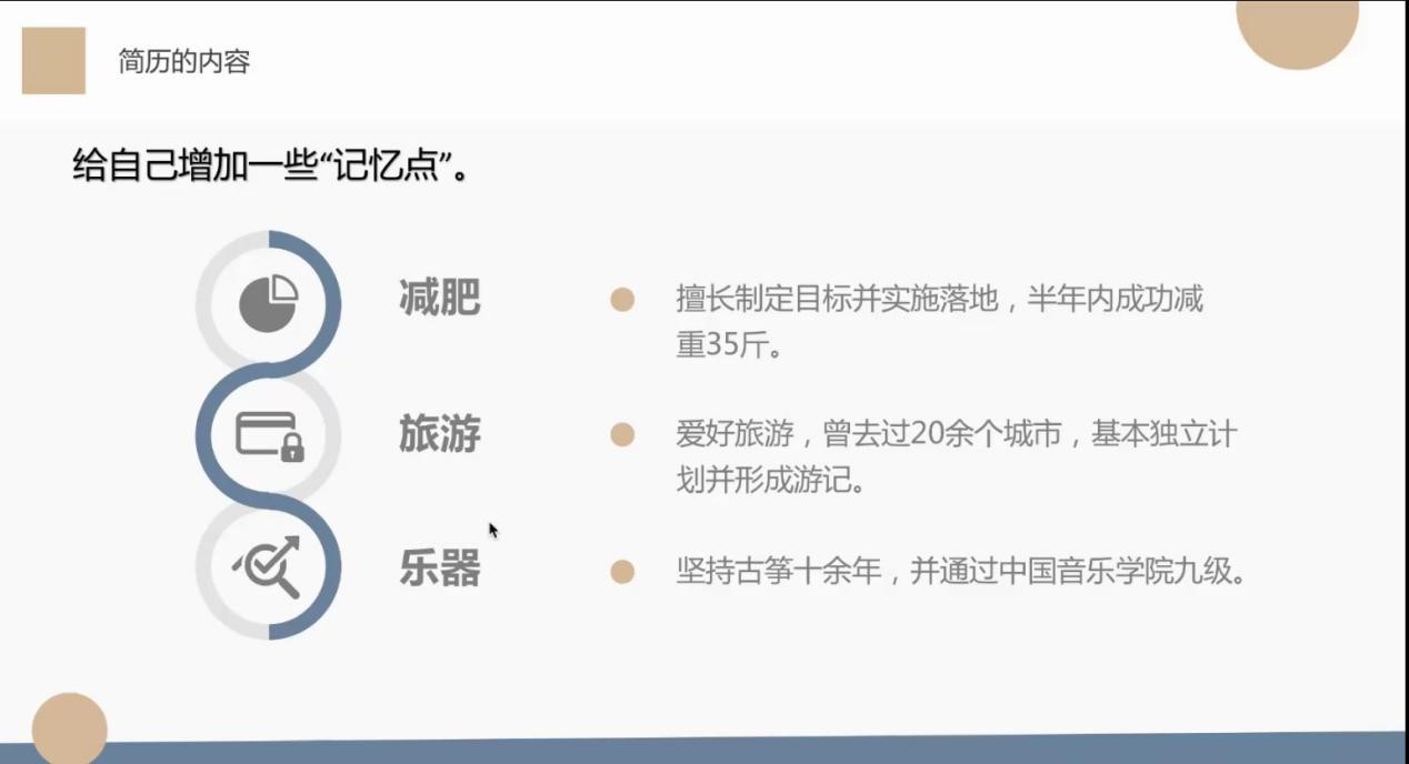 贺琦学姐从如何布局一份简历的格式入手,告诉我们一眼看过去,什么样的简历才是好简历。通过简历对比总结出:一份能在几秒之内抓住HR眼球的简历需要进行划分区域模块、增加色块和有一定的分割小技巧。