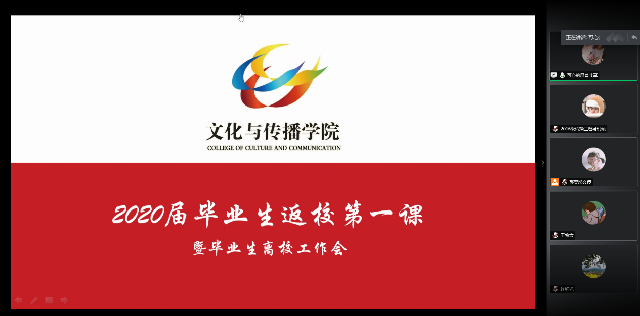 6月11日晚上,香蕉视频 通过腾讯会议召开全院2020届毕业生返校第一课暨毕业生离校工作会,向全体毕业生详细解读2020年春季学期学生返校工作安排及相关注意事项,并回答学生具体疑问。学院2020届一百余名毕业生悉数守在云端等待一场云相见。学院党总支副书记高琼、专职辅导员郭奕彤、尹可心及兼职辅导员贺琦在线参加工作会议。会议由学院辅导员尹可心进行主持。