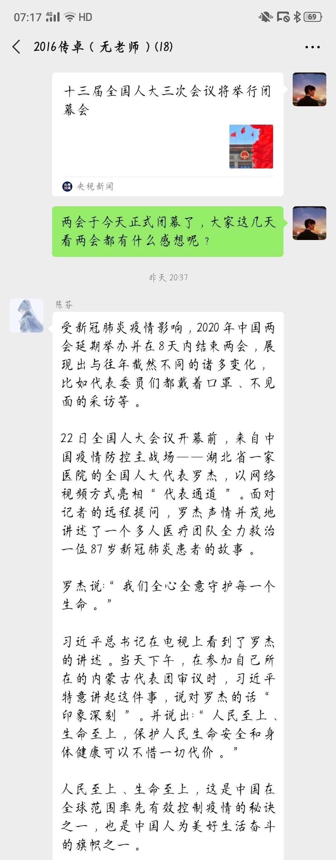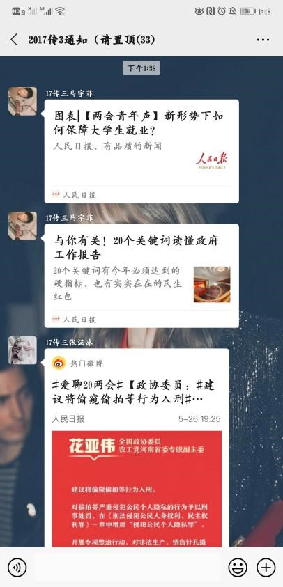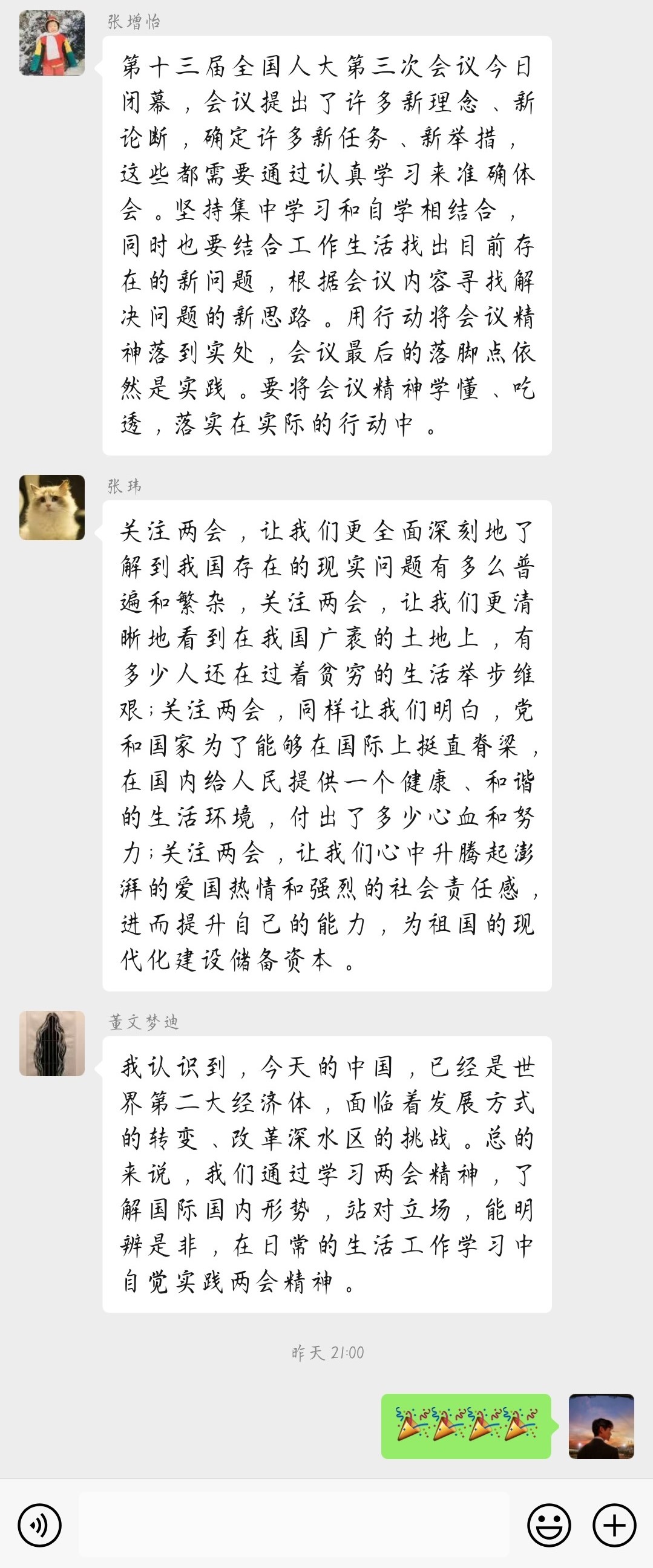 全国政协十三届三次会议和十三届全国人大三次会议分别于5月21日和5月22日在北京隆重召开。为提高香蕉视频 团员青年的理论学习热情,增强青年学生关心国家大事的意识,激发青年学生爱国热情,特号召各团支部开展关注两会热点,学习两会精神的主题活动。