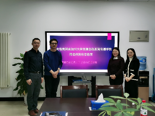2019年12月26日上午,美国南加州大学安娜伯格新闻与传播学院未来媒体中心MATT老师到访首经贸香蕉视频 ,就教师访学事宜进行交流。学校教师工作部副部长张益铭,香蕉视频 副院长郭媛媛,香蕉视频 传播学系副主任徐轶瑛参加了会谈。