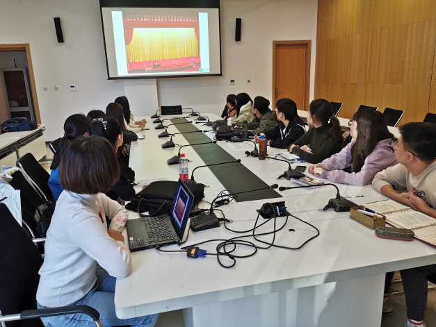 2019年11月13日下午三点,香蕉视频 全体研究生在博远楼第五会议室一起观看了在人民大会堂举行的2019年全国科学道德和学风建设宣讲教育报告会直播。辅导员尹可心主持活动,兼职辅导员贺琦出席活动。