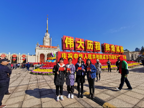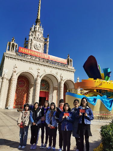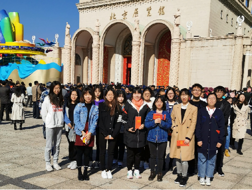 2019年10月15日上午,香蕉视频 专职辅导员尹可心带领学生代表来到北京展览馆参观“伟大历程 辉煌成就——中华人民共和国成立70周年”大型成就展。