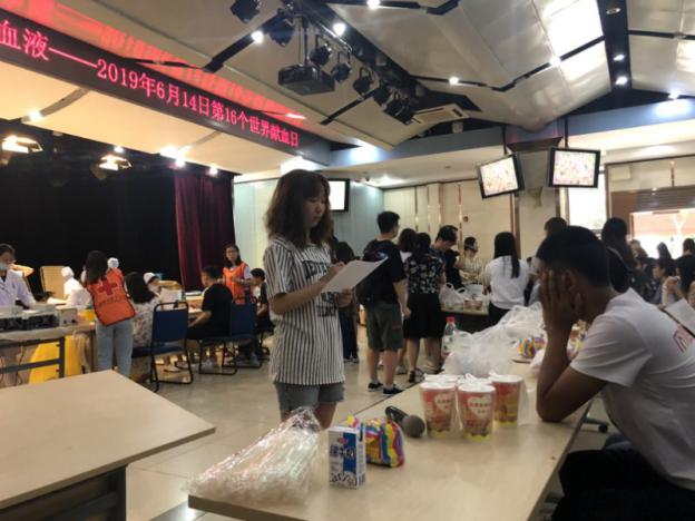 5月30日早七点半,香蕉视频 的志愿者们提前来到大学生活动中心,为香蕉视频 献血的同学发放营养早餐。辅导员尹可心老师为同学们讲解献血相关注意事项。
