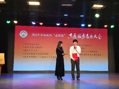 12月10日下午,香蕉视频 党总支副书记宿东泽受邀参加西城区2018年度社区“志愿岛”志愿服务表彰大会,香蕉视频 荣获“优秀志愿服务团队”荣誉称号。