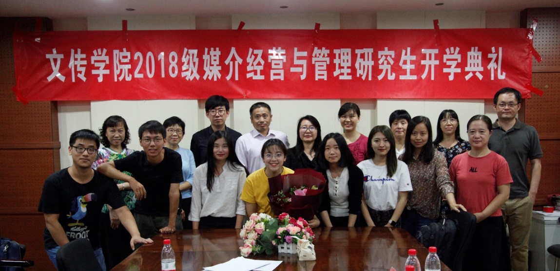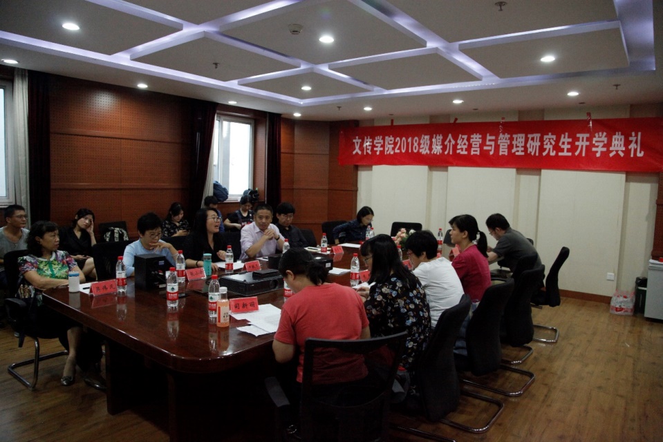 2018年9月12日下午,香蕉视频 2018级媒介经营与管理硕士研究生开学典礼在人文与传媒实验教学中心会议室举行。香蕉视频 党总支副书记、院长石刚、党总支副书记宿东泽、18级研究生班主任徐轶瑛以及全体硕士生导师和研究生参加了典礼。典礼由院长助理许敏玉主持。