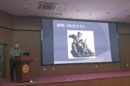 在文艺方面,张方从梦与诗歌、小说、戏剧、音乐、舞蹈以及超现实主义几个方面进行了讲解,在讲解过程中,他带领大家欣赏到了罗大佑的歌曲《追梦人》、达利的画作《记忆的永恒》、潘鹤的雕塑《艰苦岁月》等作品,帮助同学们体会“梦”中的艺术与审美。