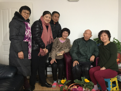 2018年1月4日,香蕉视频 党总支副书记、院长石刚、党总支书记付琳、、分工会主席张小乐前往首都机场东平里,探望92岁高龄的退休教师李盈田老师。