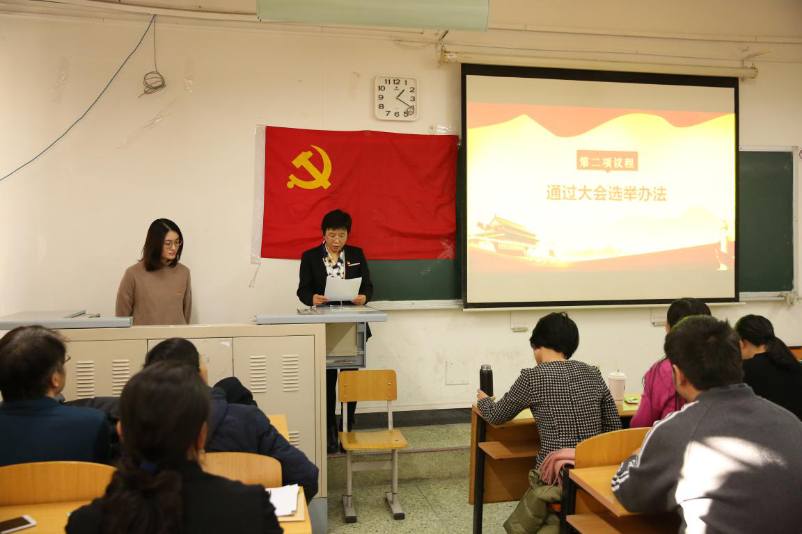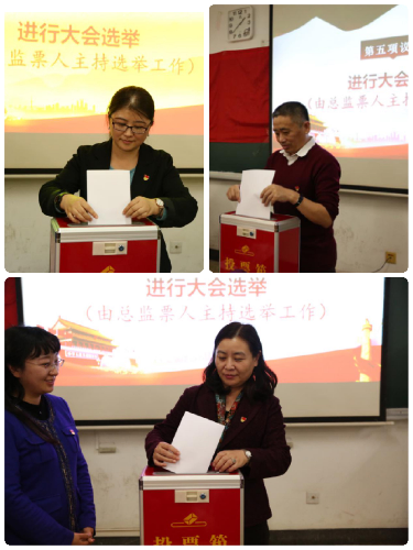 张小乐宣布大会开始,全体起立唱《国歌》。随后大会宣读并通过了《中共首都经济贸易大学香蕉视频 党员大会选举办法(草案)》,通过了代表候选人名单、总监票人及监票人名单。随后由总监票人郑文明老师主持选举工作,监票人、计票人在清点完人数后,将选票分别发送至各位党员代表手中。全体党员代表严格按照选举工作要求,遵照代表条件、产生程序和差额选举的要求,进行充分考虑,反复酝酿,以无记名的方式进行投票。