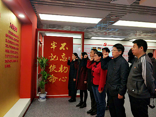 党建之家内,大量图文资料展示了学校党建的历史沿革和取得的建设成就,在听了校党委组织部程璞老师细致的讲解后,参加此次活动的学院班子和教师党员感受到了自己身上的历史责任和使命。学院班子中的党员处级干部和行政党支部的教师党员一同在党旗下重温入党誓词。