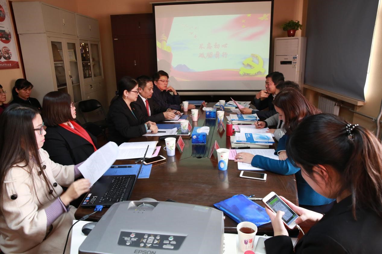 学院党总支为此次迎检工作做好了充足的准备。首先播放了学院的宣传片,随后由党总支书记付琳向专家组做了题为“不忘初心,强基固本打造政治核心;砥砺前行,凝心聚力推动事业发展”的党建工作汇报。报告共分为四个部分:学院基本情况、党建工作格局、工作成效以及未来工作构想。付琳谈到,五年来,在学校党委的坚强领导下,党总支秉持“围绕中心、凝心聚力、突出特色、科学发展”的工作理念,不断筑牢党建的政治核心作用,从思想引领、组织建设、制度建设、作风建设、文化建设以及廉政建设等六个方面,不断夯实工作基础,以立德树人作为开展学院思想政治工作的中心,打造与学校大党建格局同向同行、融合呼应的学院党建工作格局,以党的建设统领和推动学院事业的发展。随后院长石刚从行政配合支持党建工作的角度进行了补充发言。