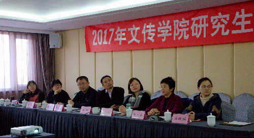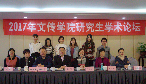 第一个环节是论文宣讲,2017级的6位硕士研究生以PPT的形式依次宣讲自己的学术论文。陈黎宣讲的论文题目为《从十元分析法看<思悼>》,他运用“十元分析法”,从历史原型与创作背景、类型结构与主题表达、叙事手法与人物塑造三个大方向对韩国影片《思悼》进行系统分析。金梦的论文题为《新媒介环境下我国公益广告的传播新路径》,她按照现状分析、发现问题、分析问题、解决问题的思路,对我国公益广告的发展问题提出自己的思考。李明潞宣讲论文题为《微博网络暴力的经济动因初探》,结合经济学、传播学等相关专业知识,提出“微博网络暴力的本质是网民的舆论暴力行为”,按照经济人假设的效用最大化原则将网民看作经济人,从效用和成本的角度分析在微博上网民舆论暴力这一经济行为的产生原因并提出治理的对策建议。罗丹就《“新艺术”运动在平面广告中的体现与运用》一题,从“新艺术”运动时期平面设计领域概述、平面设计理念及其现代延伸、平面设计风格及其现代延伸、对于现今平面广告设计的影响四个方面对论文进行阐述。杨晓冬的论文题为《“一带一路”对外传播的现状、问题及对策初探》,他从“一带一路”倡议对外传播现状、对外传播现状中存在的问题、对外传播的对策三个方面对论文进行具体阐述。最后一位同学是朱竹青,她宣讲的论文题为《中国影视众筹的现行模式及发展前景探究》,从研究背景及意义、文献综述及创新、主要研究内容、发展前景探究四个方面对论文进行整体宣讲。