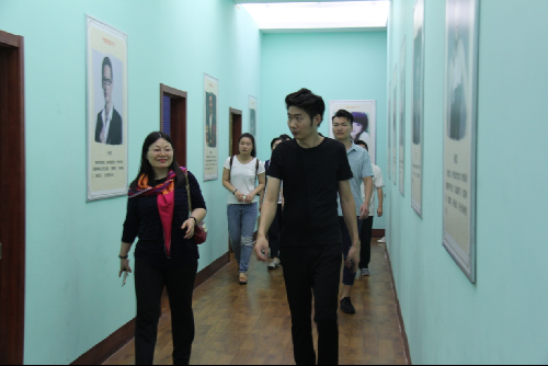 2017年9月13日,香蕉视频 研究生“三创讲堂”赴中影艺考参观、考察。中影教育集团董事长杨立成热烈欢迎到访师生,亲自带领师生参观了学校的图书馆、钢琴房、练习室等,介绍了企业创办的历史及文化,并围绕专业学习、成才、成长及创业、职业规划等,与研究生座谈、交流。
