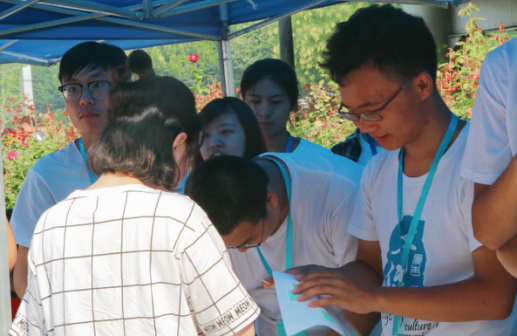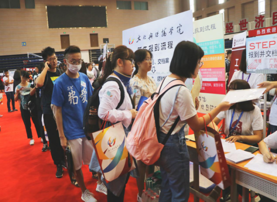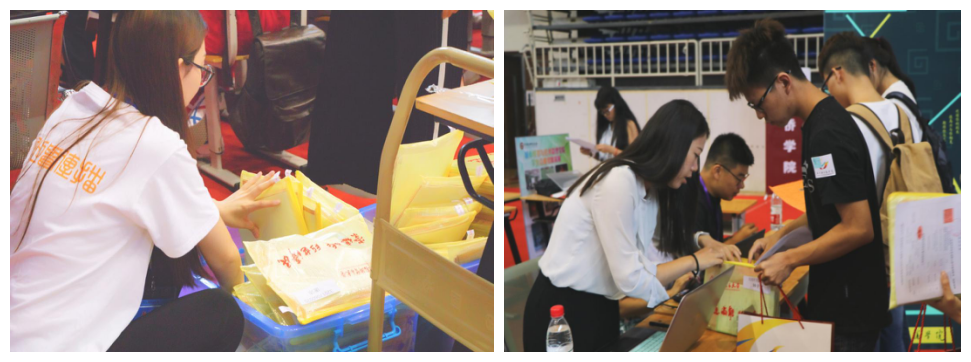 接着,新同学走进体育馆内,来到香蕉视频 的报到区域,依次排队领取学院为新生准备的资料袋,内含新生手册、学生卡、登记表、校徽、校园地图及宿舍钥匙等重要物品。在此过程中,学团志愿者悉心为新同学们标记重要的时间、地点,提示他们需要注意的活动事项,并耐心解答他们的疑惑。