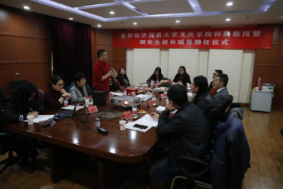 2017年1月4日下午,香蕉视频 在人文与传媒实验中心举行了第一届媒介经营与管理专研究生校外导师暨特聘教授聘任仪式。香蕉视频 党总支副书记、院长石刚、分管研究生工作副院长郭媛媛,2015级研究生硕士导师张小乐、许敏玉,班主任徐轶瑛,2015级研究生参加聘任仪式。