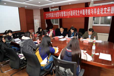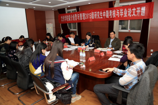 随后进行媒介经营与管理2015级研究生中期考核。着重学生思想素质、学术能力和实践能力的综合考核,考核小组由石刚、付琳、郭媛媛,硕士生导师张小乐、朱琳、许敏玉,以及学院分团委书记宿东泽组成。