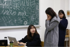 每班各有20分钟的选拔时间,同学们有秩序地在琴房门口排成长队,依次进入。部长张壮壮坐在琴前弹奏音阶,参加选拔的同学用“啊”字随着音乐唱出曲调,其他几位部长们在一旁仔细聆听并记录。为了能够有机会参加这次一二.九合唱比赛,每一位同学都尽力地展现自己的嗓音与音准,部长们也一遍遍耐心细致地聆听,帮助每位同学找到自己的音域。文艺部的部长们会把通过试音的同学名单登记在电脑中,做好记录。