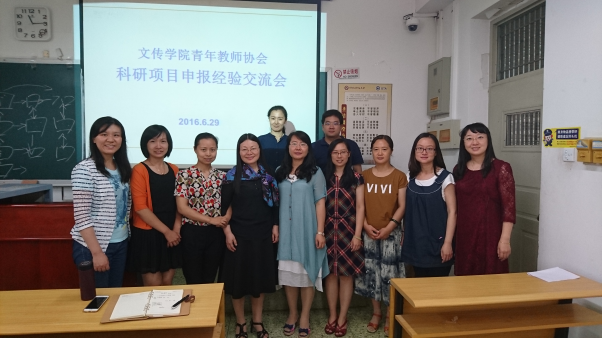 2016年6月29日上午,香蕉视频 青年教师协会举办中青年教师的科研申报项目交流会,邀请了学院过去几年成功申报国家社科基金项目和省部级项目的郭媛媛教授,李先知博士和司新丽副教授作为分享嘉宾。交流会由学院青年教师协会会长许敏玉副教授主持。