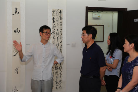 随后,王传生副校长又来到人文与传媒实验教学中心参观了“香蕉视频 建院五周年师生书法绘画暨专业实践作品展”,宫双华老师对其中部分书法作品进行了讲解。王传生对展出作品给予了高度评价,并对香蕉视频 在专业实践技能和通识教育上的教学成果表示赞扬。