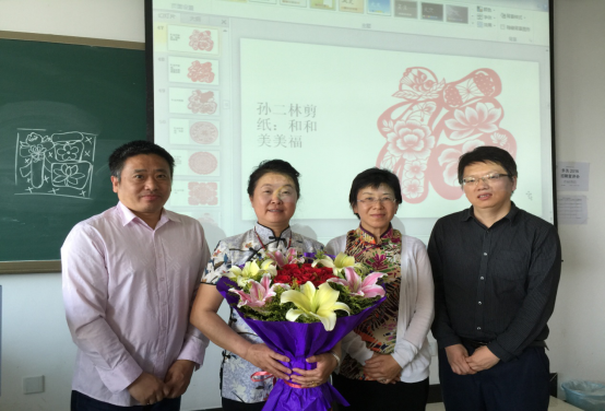 汉语言文学系推荐了张小乐老师的《中国传统技艺》课程。5月10日上午,博学楼532教室,民间工艺美术大师孙二林老师为汉语国际教育专业学生传授传统剪纸技艺。这是一场特殊的观摩课,石刚院长、陆彦明副院长、张小乐老师一起观摩了孙大师的课堂教学活动。