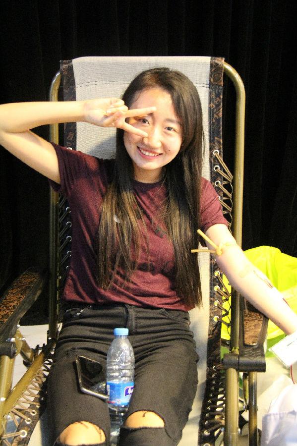 此次献血活动对于2015级的大部分同学来说都是人生中第一次无偿献血,然而对于大二的孙帅、董鸿宇、路瑶,大三的高怡等同学而言,这已经是他们第二次,甚至第三次献血经历了。他们在献血之余,还不忘安慰第一次献血的大一新生,缓解他们的紧张和焦虑。