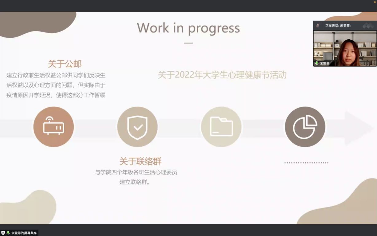 即使疫情的反复给各部门的工作带来了许多不便,但是在每位同学与老师的积极配合下,大家的工作都在线上有序进行着。希望疫情早日结束,我们能相聚于校园之中!