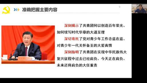 党课过程中,全体党员、师生悉心听取邓阳对总书记讲话的解读。习近平总书记在讲话中全面回顾了100年来共青团坚定不移听党话、跟党走的青春历程,充分肯定了共青团在党的领导下,团结带领一代代团员青年为实现中华民族伟大复兴中国梦所作出的重要贡献,深刻阐明了共青团和青年工作的历史经验,对当代青年寄予殷切期望,对做好新时代共青团工作提出明确要求。邓阳谈到,习近平总书记的讲话,深刻揭示了共青团何以创造百年荣光、如何续写时代华章的大道至理;深切寄托了党对青少年工作念兹在兹、对青少年一代关怀备至的大爱真情;深刻指明了共青团在实现中华民族伟大复兴征程中过去已经肩负、今天正在肩负、未来还将肩负的大任重责。