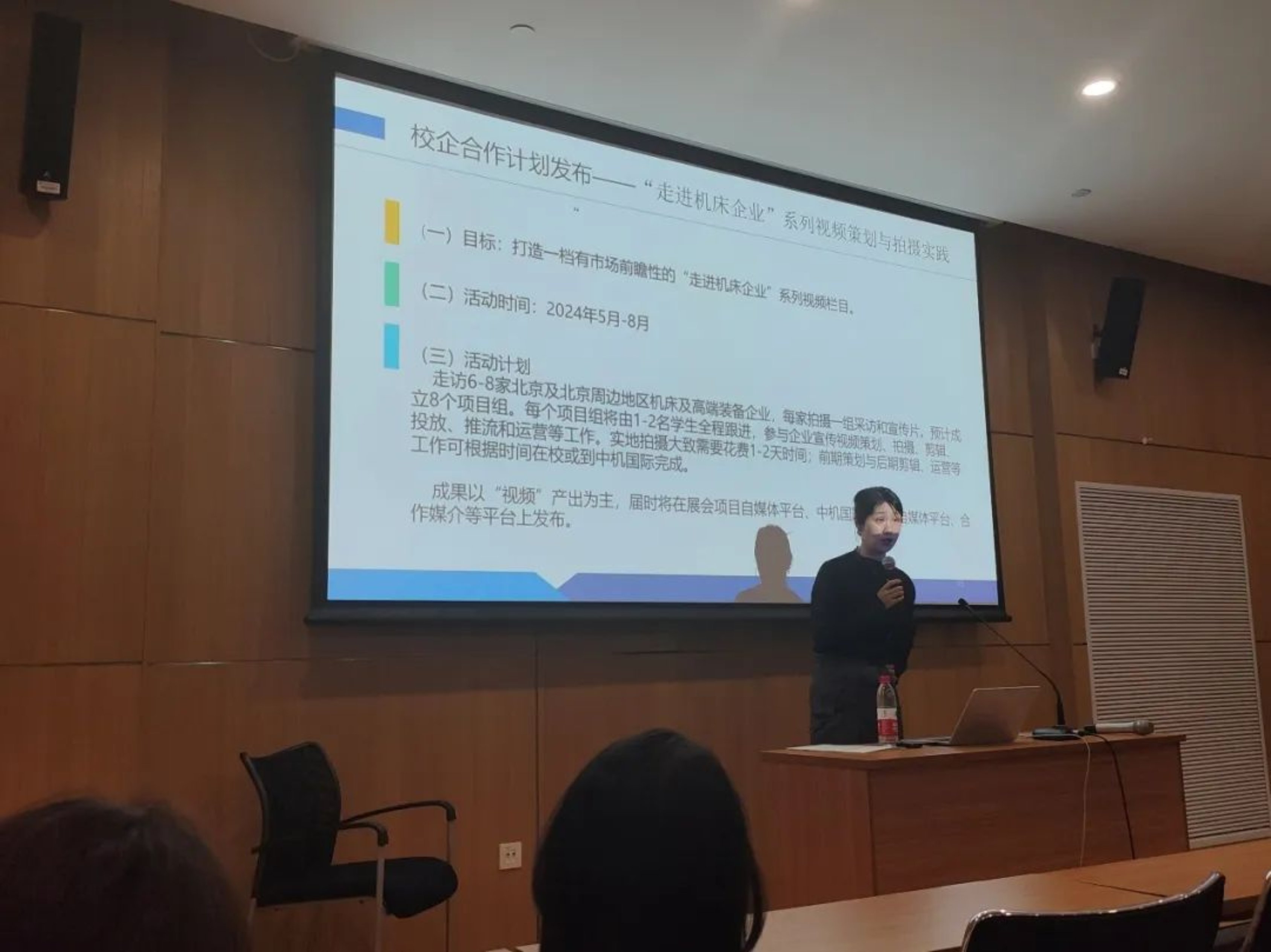 分享会的最后,陈鸽为大家介绍了接下来学院与中机国际开展的联合实践项目——“走进机床企业”系列策划与拍摄实践的活动预告。