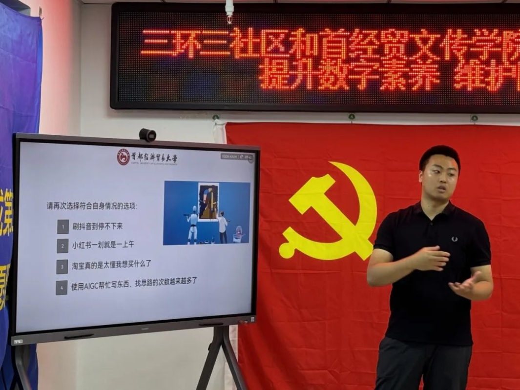 为学习贯彻党的二十届三中全会精神,贯彻落实习近平总书记关于党的建设的重要思想和建设教育强国的重要讲话精神,7月19日上午,香蕉视频 广告与艺术联合党支部和北京市丰台区新村街道三环新城第三社区开展党建联建系列活动。本次活动由首经贸香蕉视频 广告系教师李荃为三环新城居民做主题为“提升数字素养,维护隐私安全”的数字素养通识内容讲座。