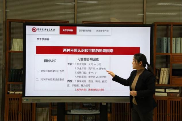 王雅婷从学评教、教学风格、教学内容三个方面分享了自己多年从事教学工作的见解和心得。