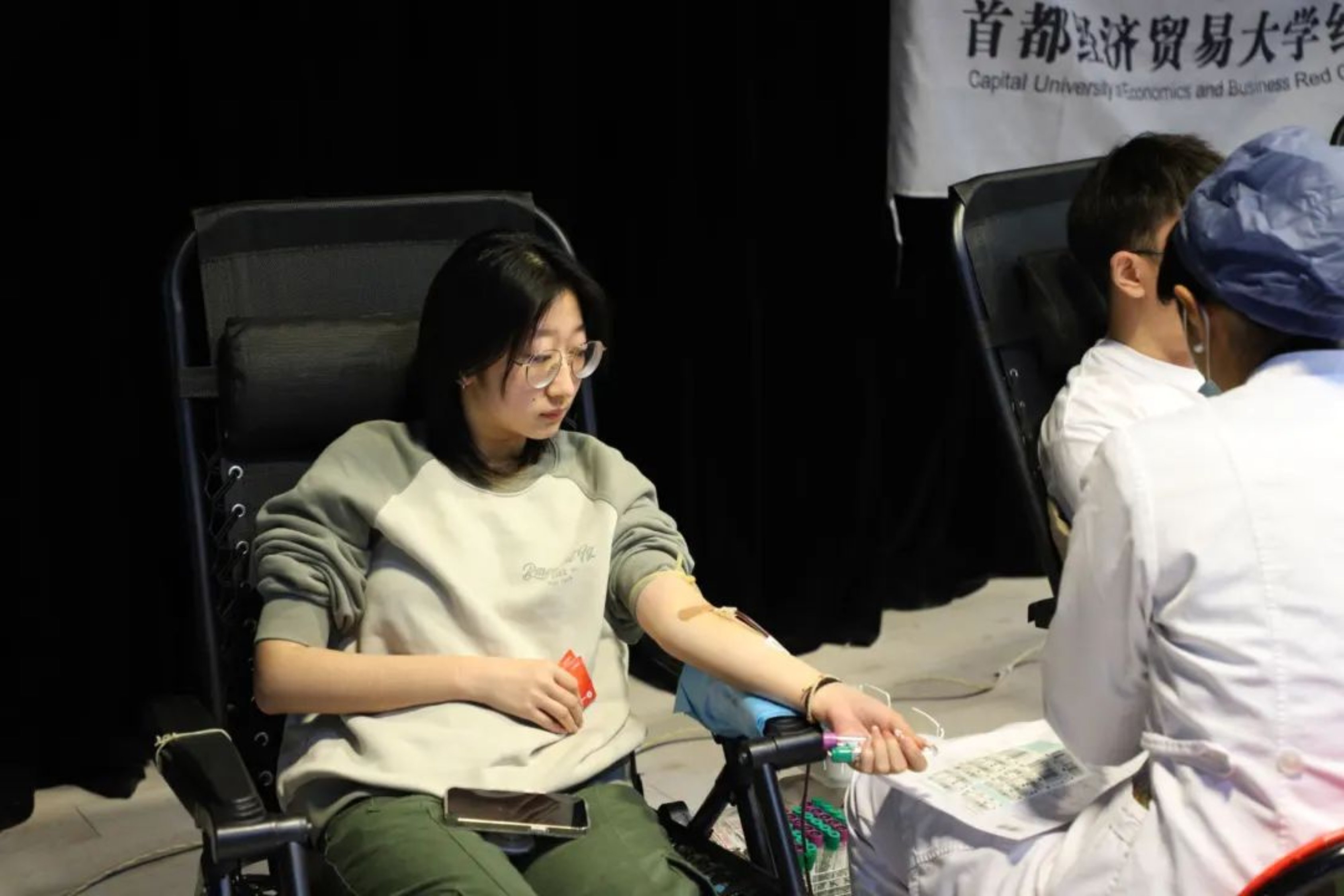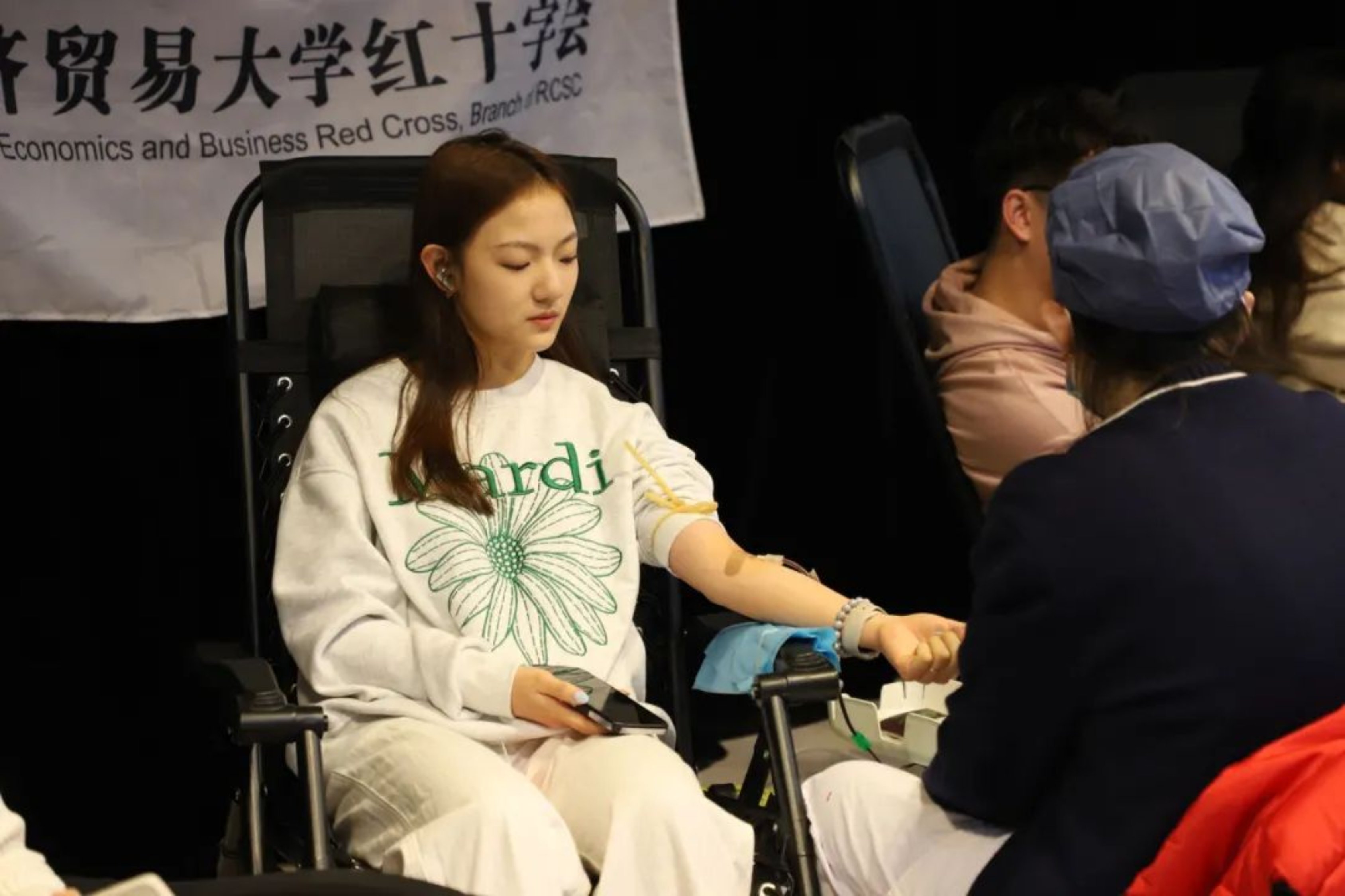 朱乔:第一次参加学院的献血活动,一早就看到偌大的报告厅坐满了来献血的同学。献血过程中我们关注每一位参与者的状态,出现低血糖、头晕的情况及时进行帮助,送上补充糖分的食物,充分地体会到了献血者的爱心与组织者对献血者的尊重,这样良性的关系才能鼓励更多的同学参与无偿献血的活动中,希望能帮助更多有需要的人!