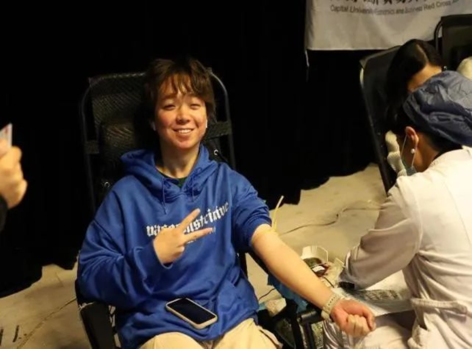 丁芊雨:一件一直很想做的事终于完成啦!一想到自己的血可以帮助到其他人就超有成就感。献血过程中老师们一直陪在我们身边,也感受到了志团小伙伴们贴心的服务,幸福感十足!今天真的很有意义,也期待下一次~