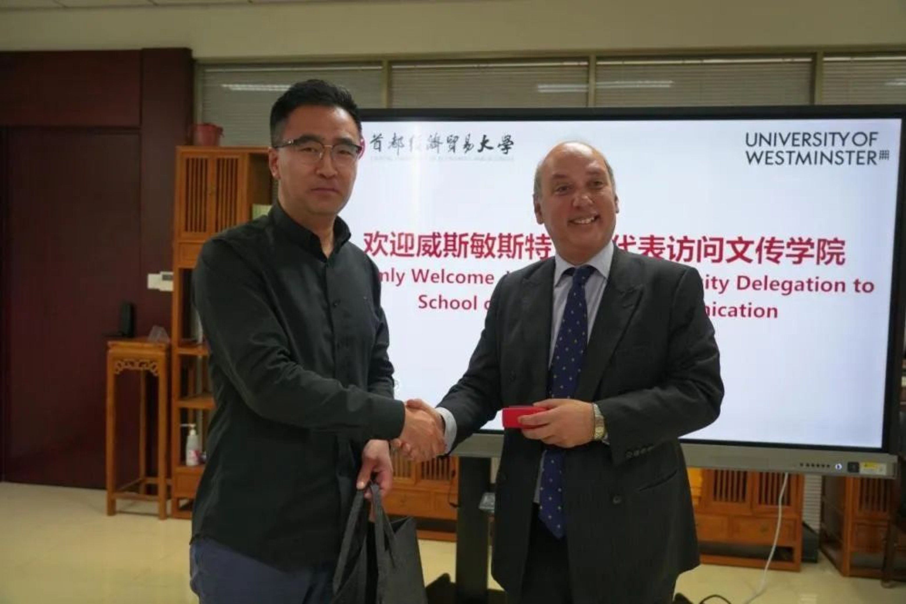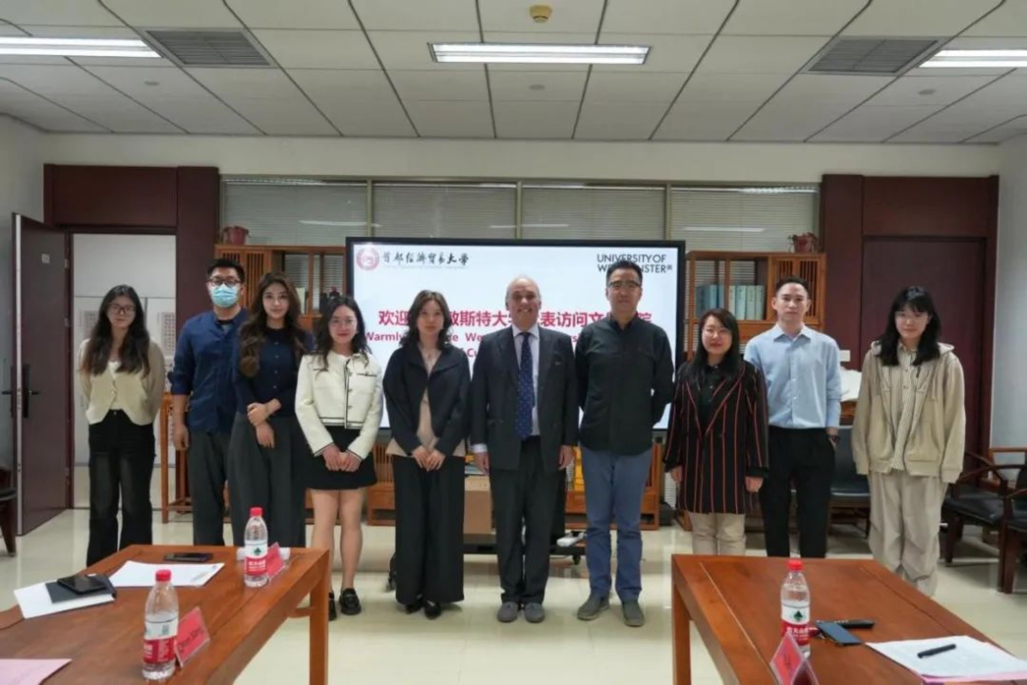 2024年4月15日下午,威斯敏斯特大学国际交流中心主任 Stephen R D Wallis先生到访首经贸香蕉视频 ,就对外交流项目事宜进行交流。学校国际合作交流处副处长魏华颖、项目主管李山山、香蕉视频 院长于九涛、副院长许敏玉、对外交流项目专员李芊芊、广告系教师董玮、传播系教师项奇仁、外事秘书王思丹以及本科生学生代表纪蓉燕参加了此次会谈。
