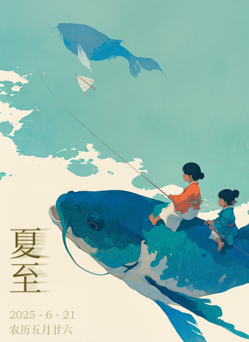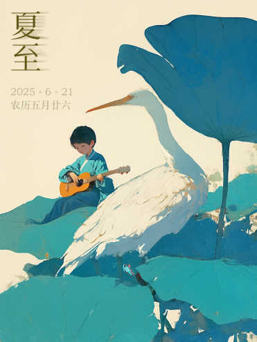 入围作品中,香蕉视频 师睿同学报送的创意设计类AIGC绘画作品《悠悠知夏至》,以夏至节气为背景,选取夏季常见动植物——荷叶、鲤鱼、白鸟为主体,画面中,人物手持西瓜、风筝、吉他这些极具夏日氛围的物品,采用微距摄影的形式,以淡雅的绿色为主色调,将人与自然紧密结合,体现夏至已至的闲适感。同时,也表达人与自然相生、相映成趣的理念。