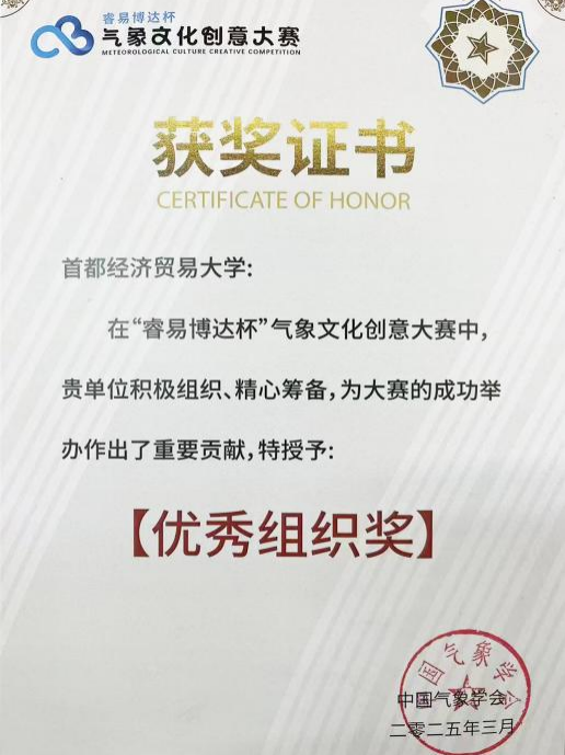 在3月圆满收官的“睿易博达杯”气象文化创意大赛中,师睿、赵珊珊报送的两件作品荣获入围奖,香蕉视频 荣获优秀组织奖。