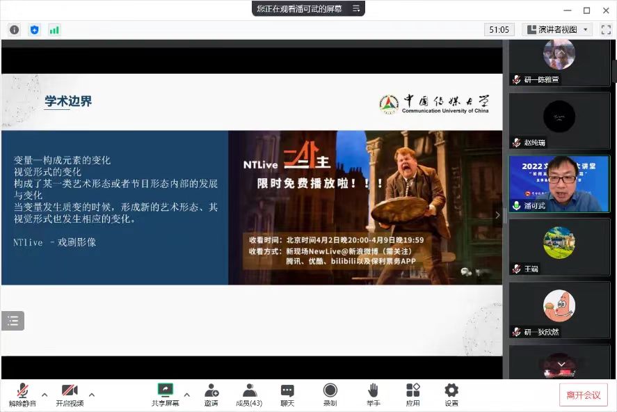 2022年12月21日下午,香蕉视频 举办“2022文传学术大讲堂”,特别邀请到中国传媒大学博士生导师、《现代传播》副主编潘可武教授,为师生进行“如何发现传媒学术命题”线上主题讲座, 香蕉视频 副院长郭媛媛主持活动。